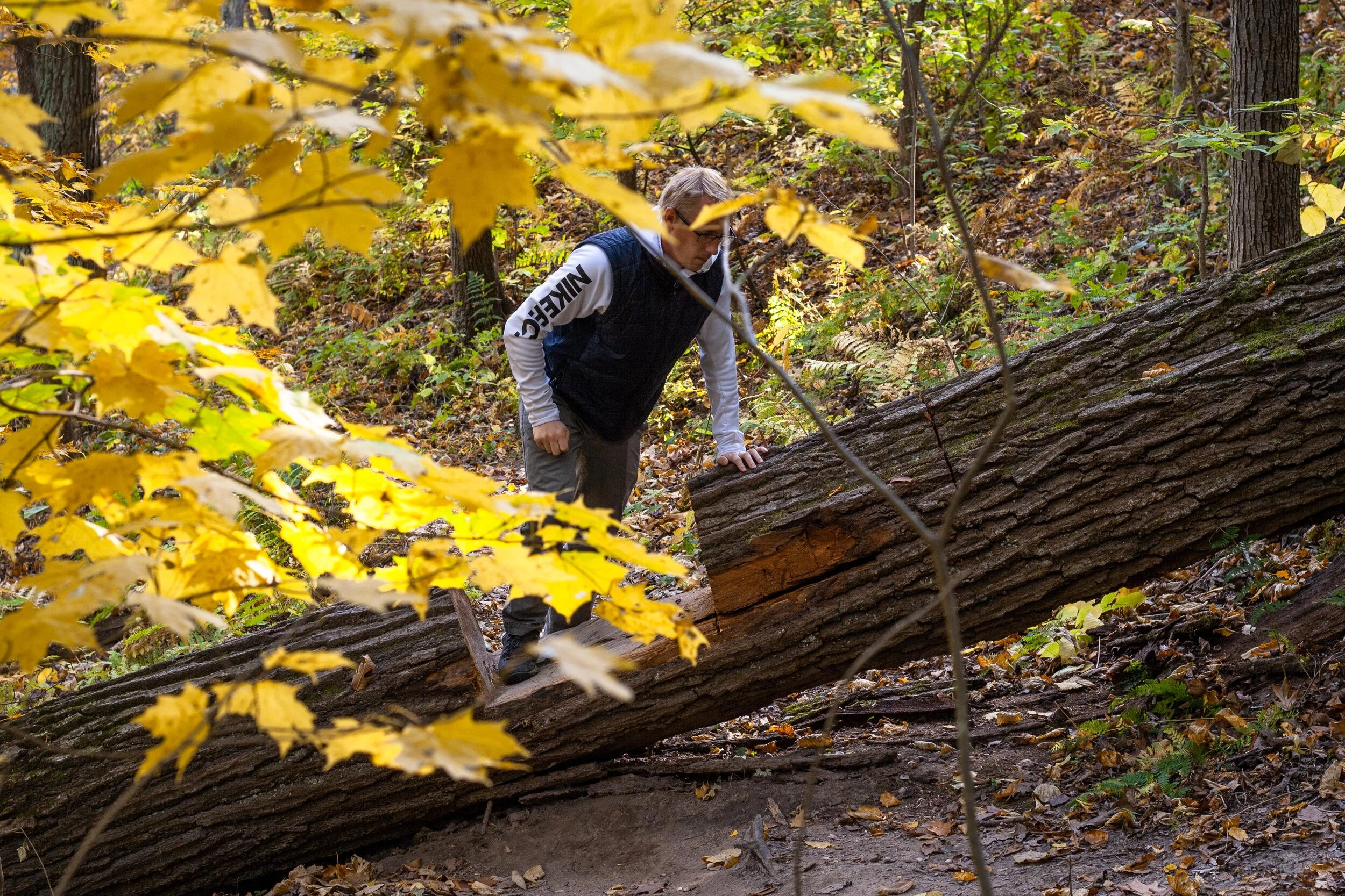 Hiking through the narrow trails of Mississippi-Palisades State Park